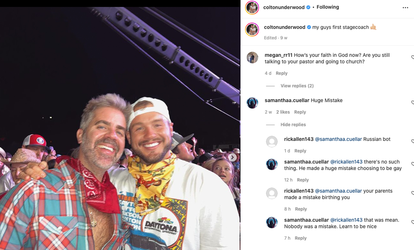 Usually choosing to rise above the fray, the former NFL player surprised his followers when he chose to respond via an Instagram story. It can be difficult to engage with homophobic rhetoric by taking the high road. Nonetheless, that is exactly what Colton did, reports Out.