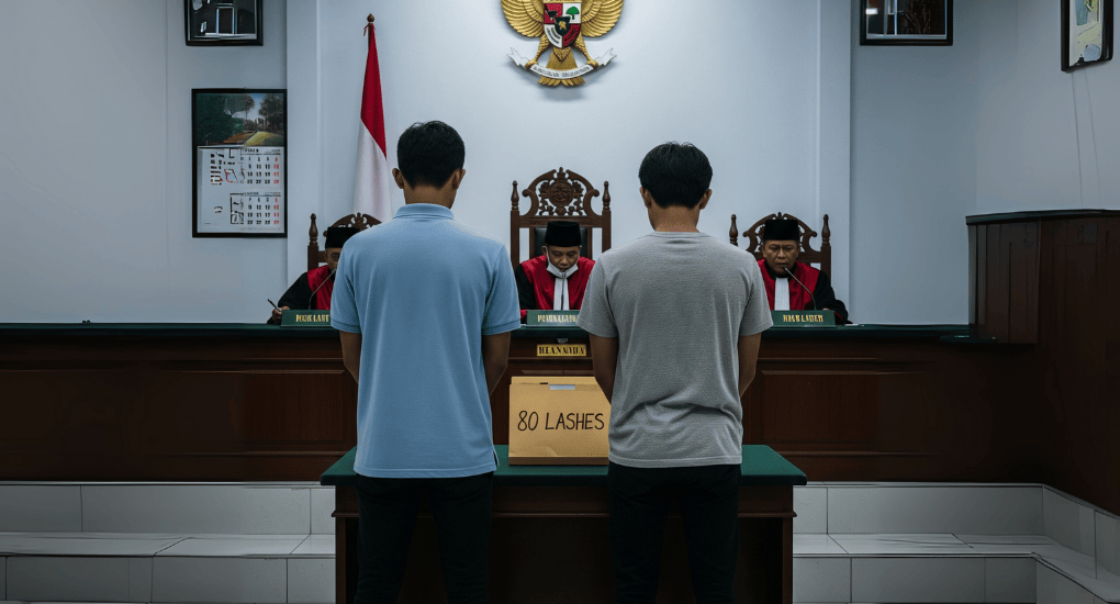 Residents reported the pair to patrolling religious police, who forced entry into the cubicle at Taman Sari city park. The court ruled that kissing and hugging were acts leading to same-sex relations under Aceh’s Sharia-based criminal code, which is enough to trigger caning.