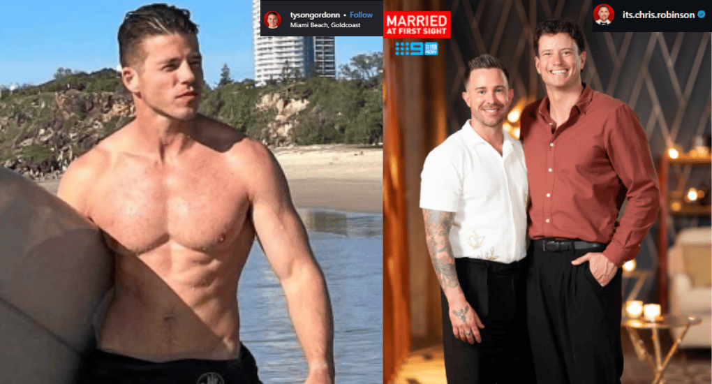 Tyson Gordon (IG/@tysongordonn) and Chris Robinson and his husband Sam Stanton. (IG/@its.chris.robinison)