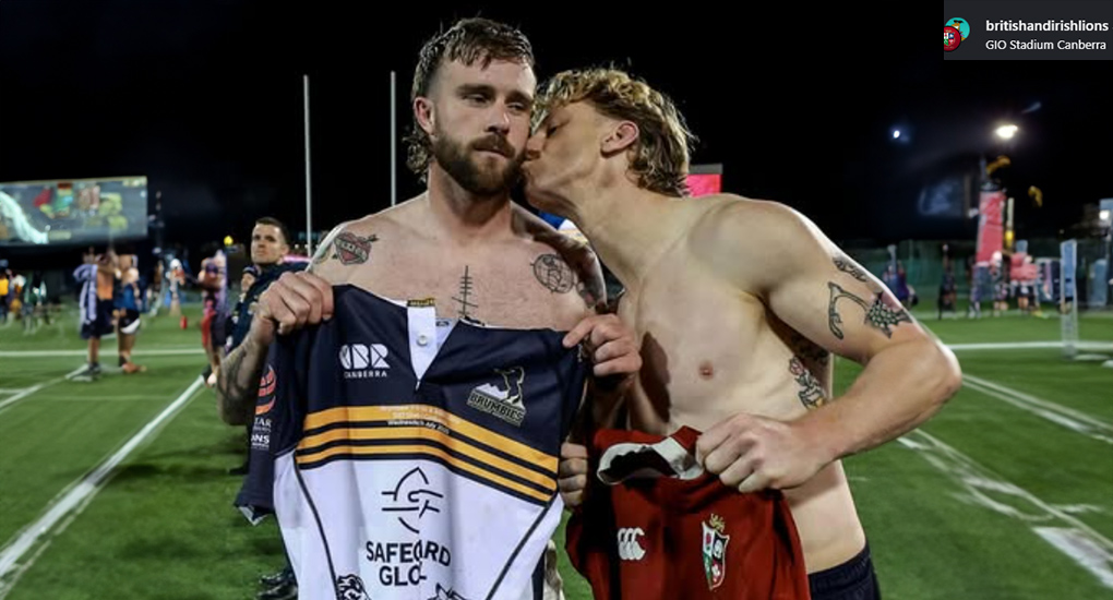 After the Lions secured a win against the ACT Brumbies in Canberra, all eyes were on the players during the traditional formalities. Brumbies player Ben O’Donnell and the Lions’ own Mack Hansen, who previously played together for the Irish club Connacht, met on the field to exchange jerseys. The reunion between the two old mates was sealed with a kiss. Photos of the moment quickly appeared on the official social media channels for both the British and Irish Lions and Connacht Rugby, showing the two men sharing a clear moment of affection.