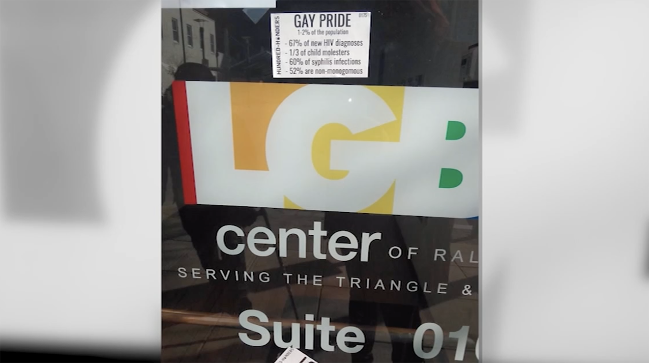 Homophobic stickers were smeared across the front windows of the LGBT Centre of Raleigh in North Carolina in an attack on the city’s LGBTIQ community recently.